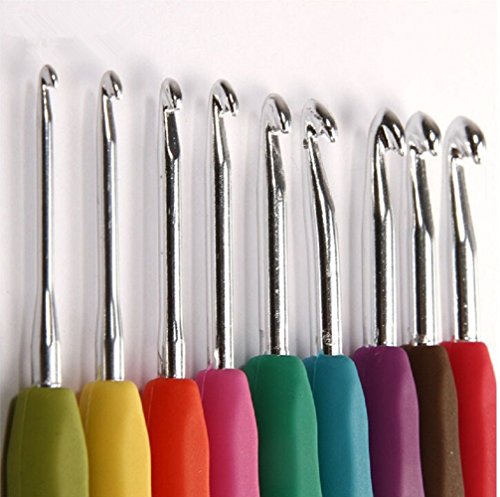 - EASY TO USE: crochet needles have aluminium tips have no rough edges and deep throat so yarn doesn't slip or snag.9 Crochet Hook sizes from B/1 (2mm) to J/10 (6mm)
