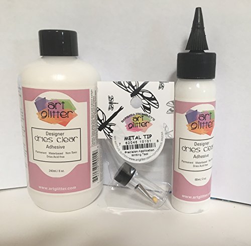 Art Institute Glitter Designer Dries Clear Adhesive Bundle 8oz,2oz, Metal Tip