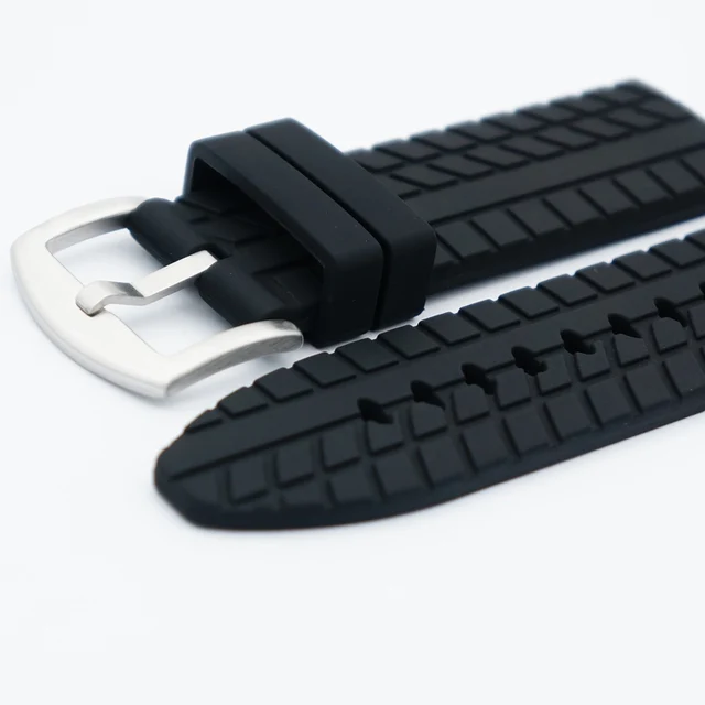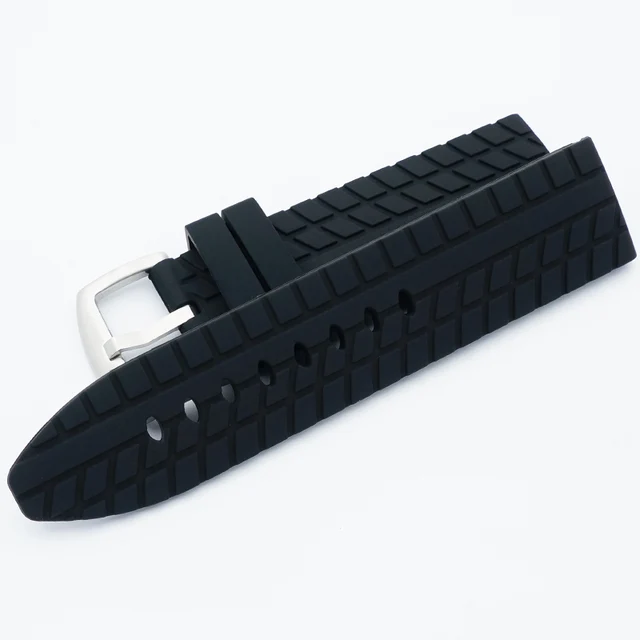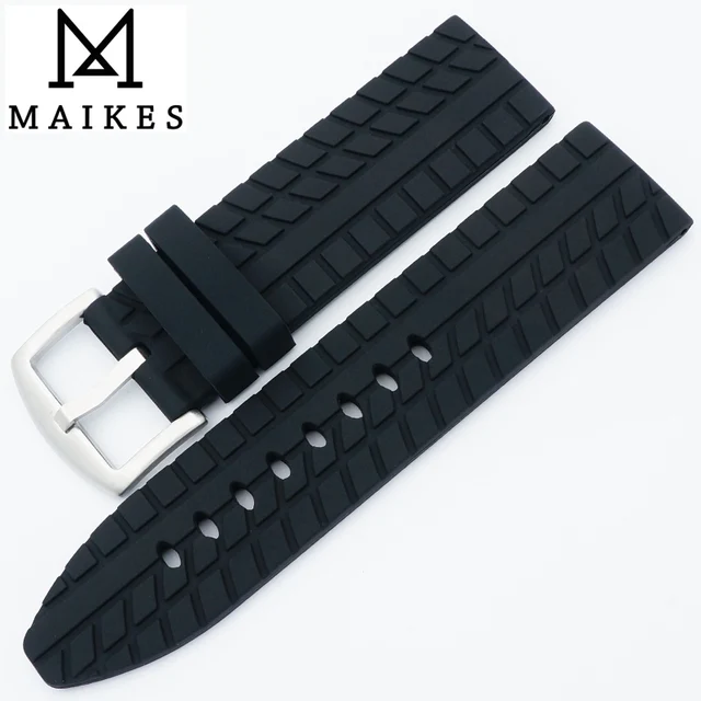 | [해외]MAIKES 새로운 도착 24 미리메터 고무 시계 밴드 남성 높은 품질 블랙 3D 타이어 곡물 실리콘 시계 스트랩 파네 |