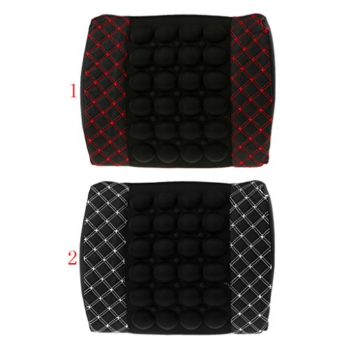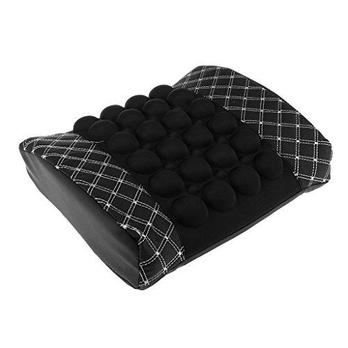 -. Feature : Help ease the back pain that comes from sitting in car seats or chairs with inadE.q.u.a.t.e lumbar support / Highly resilient foam keeps its shape; the elastic strap helps anchor the cushion to your chair / With massage function, is conducive to human blood circulation. / Using the most advanced physiotherapy concept, correct back sitting position, holding sedentary relaxed waist. / 12V DC power supply connected to the car, lumbar support vibration velocity can freely adjust, with remote control switch, with the strength of two speed.