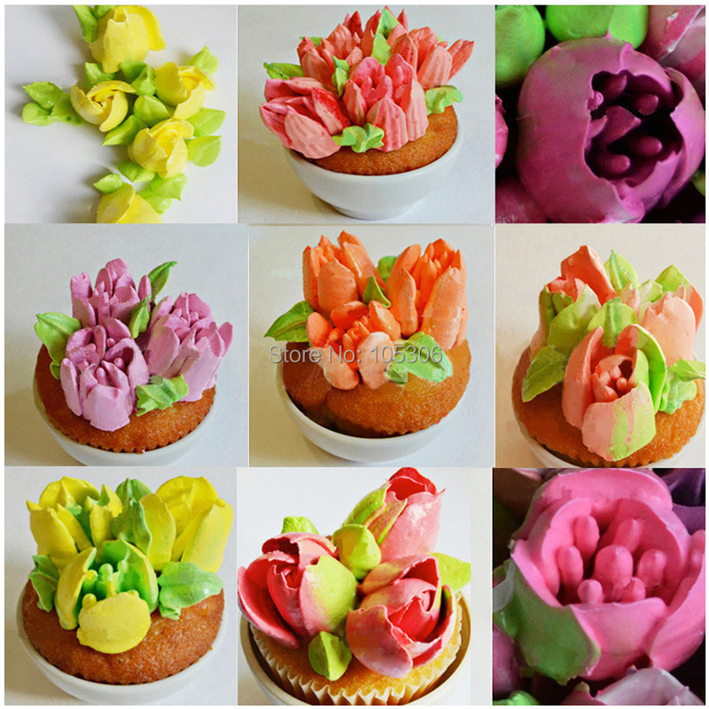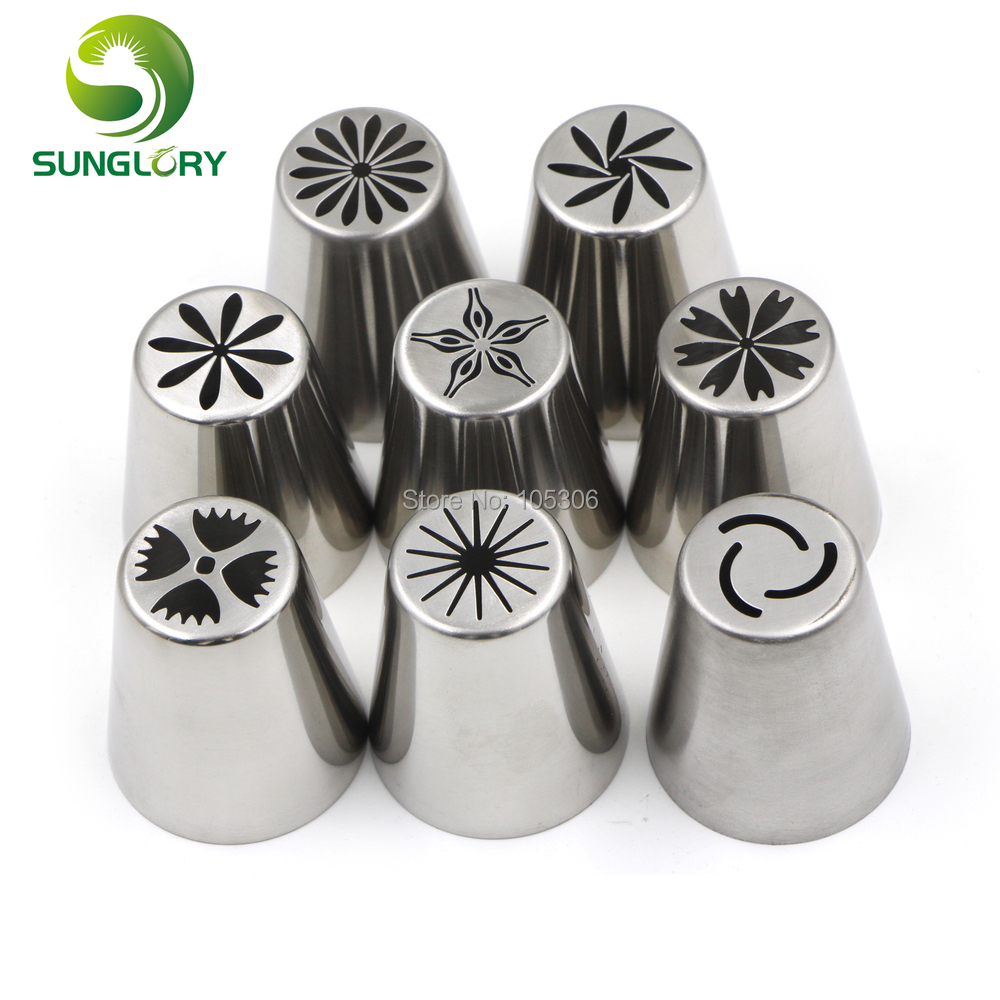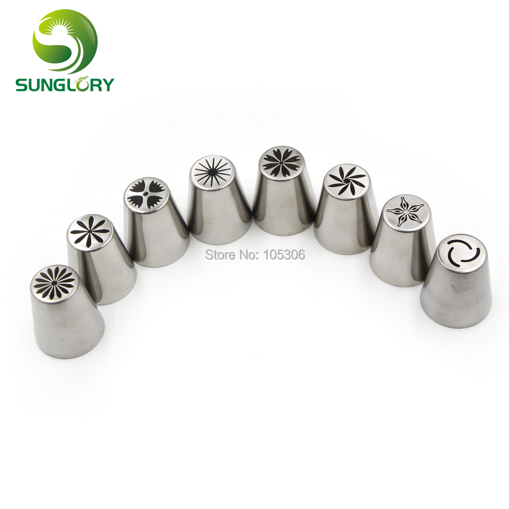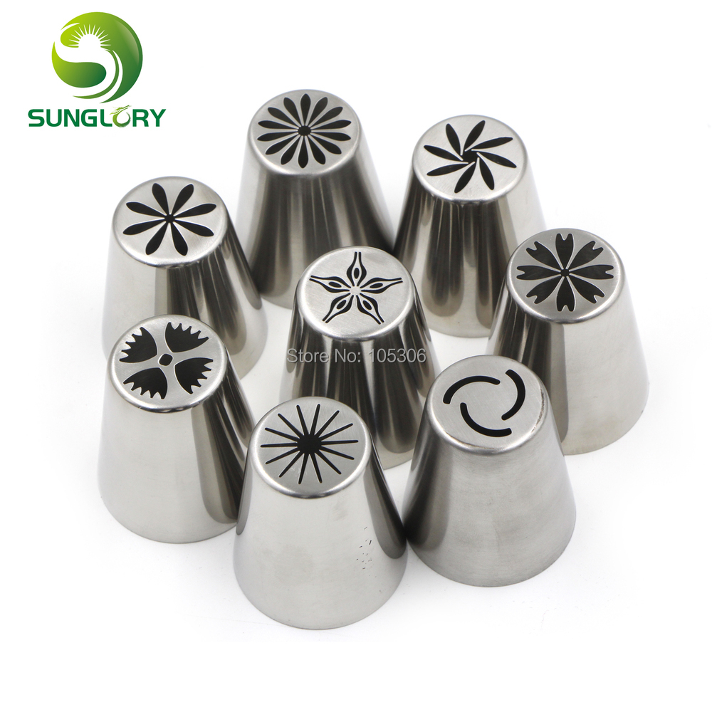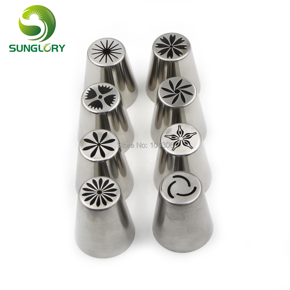 One Batch Forming Russian Flower Nozzles 8PCS Stainless Steel Icing Piping Nozzles Cupcake Rose Pastry DIY Cake Decorating Tips