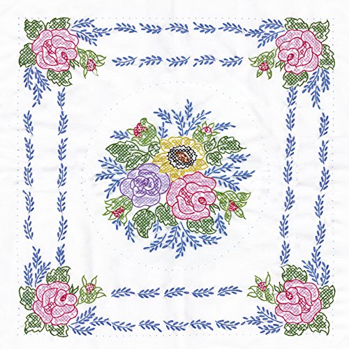 Tobin Stamped Quilt Blocks Cross Stitch Kit, 18 by 18-Inch, Floral Bouquet, White, 6 Per Package