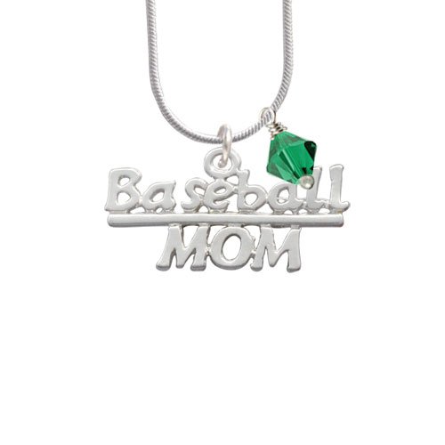 - Title : Silver "Baseball Mom" Emerald Swarovski Bicone Charm Necklace [Jewelry]