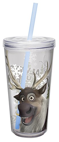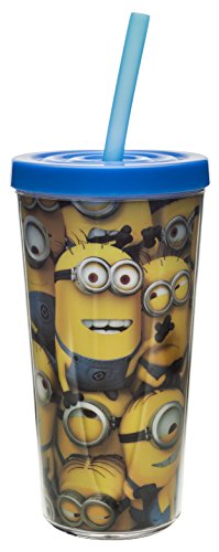 Convenient screw-on lid reduces spills and straw has stopper that prevents it from falling out