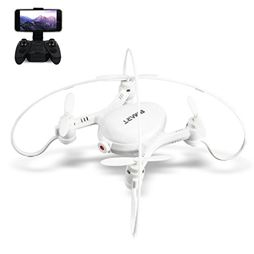-. Feature : Cool new quadcopter featuring Wifi FPV, Altitude hold, Hand launching, Multiple speed modes and a Unique propeller guard setup. The overall design of this quadcopter is pretty nice looking and the most notable feature is how it set up the propeller guards. Rather than wrap around the propellers individually, there is a single plastic frame that protects the props from all sides, the bottom, and the top of the quadcopter. / Altitude Hold and Hand Launching: One key press to take off the quadcopter altitude holding. In this mode, the UAV always stay at the same height in the air thanks to its high-precision barometer. Hand launching allow you to throw out the drone, and its propellers and motors will start functioning, which enables it to stay in mid-air. / One Key 360°Flips Mode: With the latest technology of 6-Axis Gyro flying control system, you could press down the roll buttom and the transmitter will emit a "Di Di..." to enter advanced mode, choose the direction button to flip your mini quad copter. (Leftword, Rightword, Forword, Backword 360°flip) / 100% QUALITY GUARANTEE 30 DAY BACK MONEY GUARANTEE - 12 MONTH WARRANTY: Please rest assured that you have made the right purchase, Our Mini Quadcopter Drone is your best choice. We are pretty confident about the quality of our products that is why it comes with a 12 month warranty. / 3D FPV Real Time Transmission on Your Screen Display: Camera equiped with 0.3MP and the WiFi FPV video is streamed to an app on your phone where the video is also recorded. Video pixel is 640*480 and Pictures pixel is 720*576. WiFi FPV is notoriously difficult to use since there is always a little bit of video delay, this is overcome by including altitude hold with the quadcopter which keeps throttle stable. It allows you to focus on the direction you're moving rather than fighting the throttle.