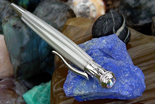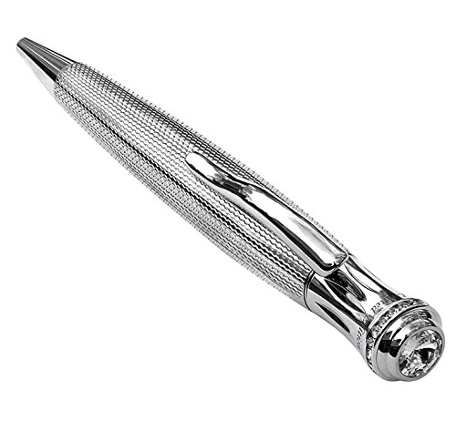 Xezo Ambassador Diamond-Cut and Rhodium Plated Twist Action Ball Point Pen with Fine-Cut Austrian Crystals, Weighty and Balanced, Limited Edition (Austrian Crystal B)