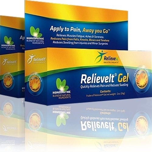 -. Title : RelieveIt Gel Quickly Relieves Pain Associated with: Arthritis Fibromyalgia Joint Pain Discomfort Muscle Aches Muscle Soreness Bursitis Tendonitis Sciatica Swelling