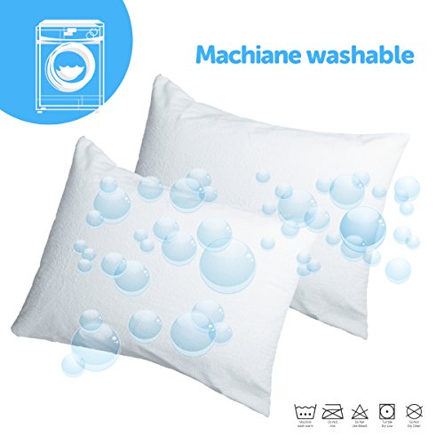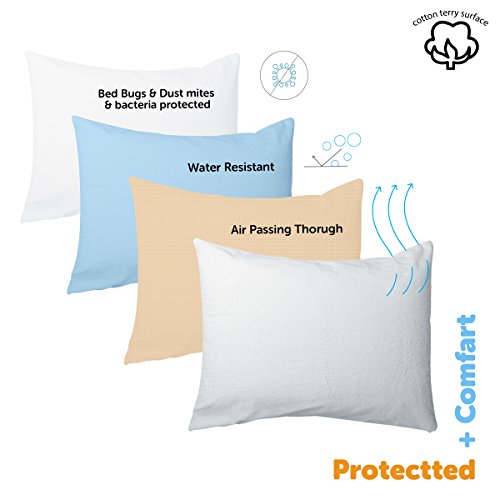 - 100% WATERPROOF & BED BUG PROOF: Our waterproof pillow protector is the perfect defense against spills, urine, perspiration, also protects against: Bed Bugs Dust Mites, Allergens And Bacteria.