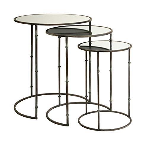 -. Title : Set of 3 Decorative Circular Mirror Top Nesting Tables 24"