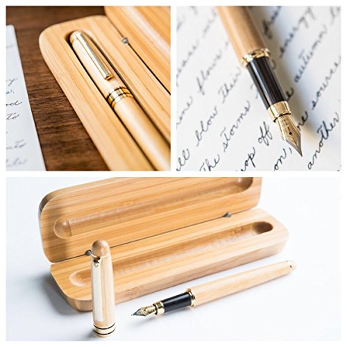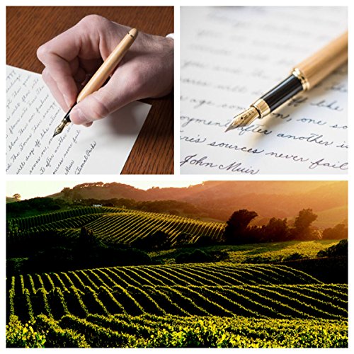 -. Feature : HANDCRAFTED TO PERFECTION - Project confidence, skill and prestige with this must-have luxury writing instrument. With gold and silver accents set against a handmade natural bamboo body and cap, this high end fountain pen marries vintage elegance with a sleek design suitable for the modern world. Turn heads in the board room, impress friends or loved ones with your class and style, or simply set yourself apart with a thoughtful and beautifully written note. / BEAUTIFUL GIFT SET - Enclosed in a matching engraved bamboo case, our "NAPA VALLEY CHARDONNAY" fountain pen makes a thoughtful gift for life's big moments. This classic pen set, beloved by men and women alike, makes the perfect gift for any executive, creative or collector. This luxury fountain pen set is the first in our limited edition Napa Valley Collection. It embodies the beauty, class and style of the Napa Valley Chardonnay. / SMOOTH EFFORTLESS INK FLOW - Manufactured with a perfect weight-comfort ratio to ensure optimal performance. Ink flows smoothly with a gentle touch that is easy on your hand and the paper. We have carefully chosen a medium German iridium nib for its strength, durability, and beauty. Gracefully capture that creative idea or perfectly-worded phrase without worrying about smudging, skipping or slowing down. / INSTRUCTIONS INCLUDED - Each box includes instructions to make set up and use quick and easy. The pen works with bottled ink with its standard universal ink converter (simply draw the ink through the nib) or with standard "short" international size cartridges (INK NOT INCLUDED for safety purposes). / 100% MONEY BACK GUARANTEE - If, for any reason, you decide this pen is not right for you, message us for a refund or exchange. With a 100% satisfaction guarantee, you have nothing to lose. Order today.