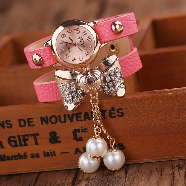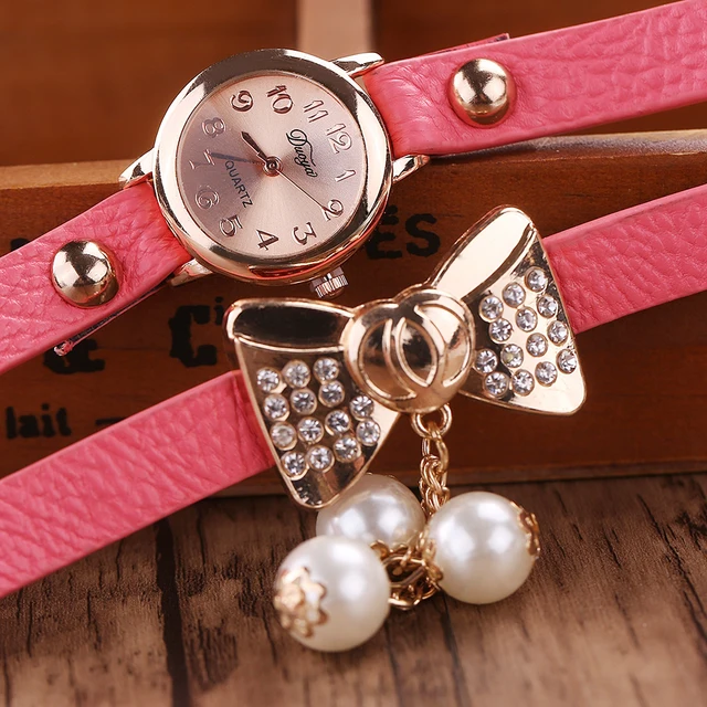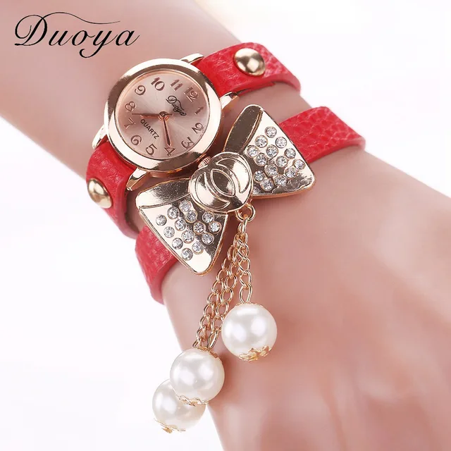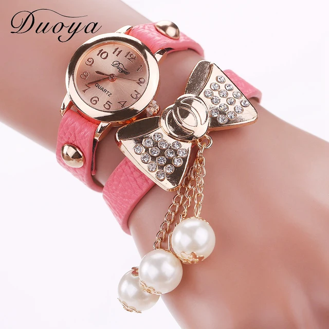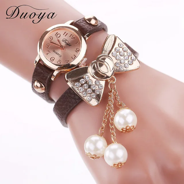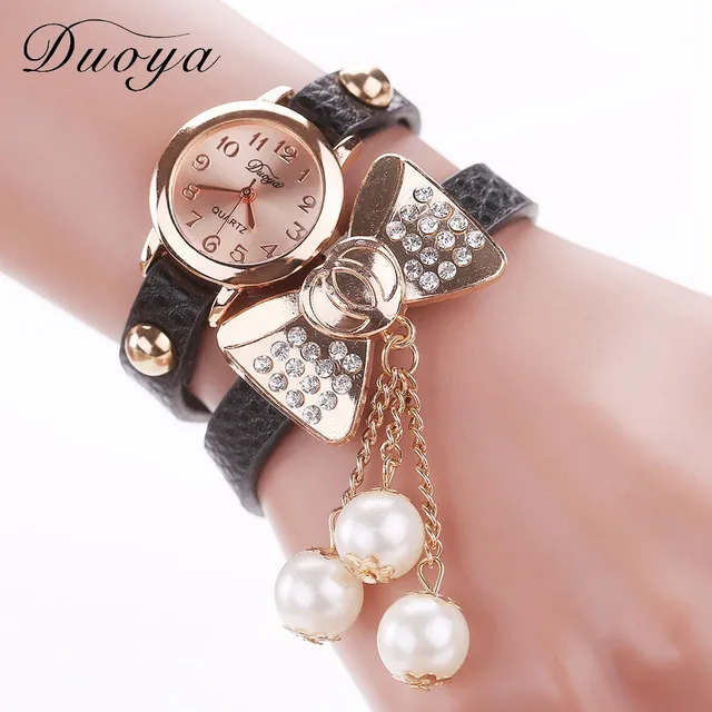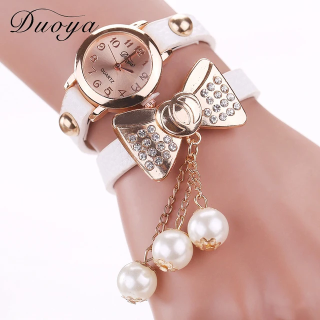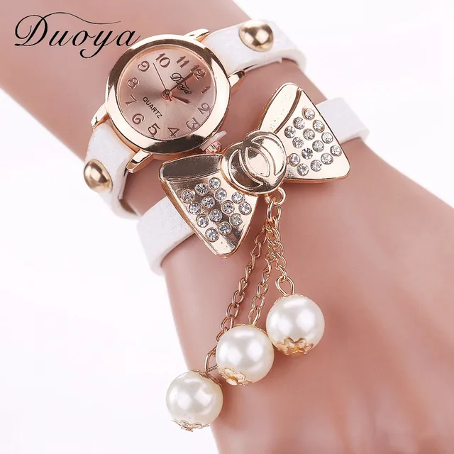 | [해외] Duoya 브랜드 패션 나비 진주 펜던트 팔찌 시계 여성 빈티지 여성 석영 손목 캐주얼 크리스탈 라인 석 시계 |