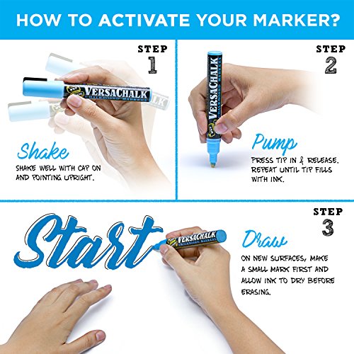 - EXTRA DURABLE REVERSIBLE TIPS: While other brands of markers have tips that fray easily, VersaChalk's high-density reversible marker tips are built for professional use. Our REVERSIBLE TIP allows you to write in fine and bold lines - just flip the tip over to switch between bold and chisel tips!
