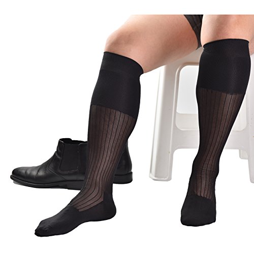 -. Binding : Apparel -. Brand : Cityelf -. Color : Black -. Department : mens -. Feature : ★ VERY SILKY AND COOL: material is 95% silky polyester, 3% spandex, 2% lycra. They are very soothing soft and lightweight. They stay up on your legs, without pilling. / ★ JACQUARD OVER THE CALF PATTERNED: 2 different patterns. sexy lined and classy plain sheer are available as choices. / ★ STRETCHY AND FIT PERFECTLY: The size can take the shape of any foot of any size, giving a tremendous look. Stretchable fabric fits your skin and returns to its original state. / ★ SHEER SEXY BUT ALSO FORMAL DRESSIER: Perfect to go with business suit and casual pants as well as garters. The socks are deodorant and moisture wicking. The hard-to-find design catches every visual. / ★ ENHANCED HEEL TOE AND SOLE PARTS: the whole sock is sheer, with the exception of the toe and sole. these parts are enhanced and not easy to be broken. -. IsAdultProduct : 0 -. Model : WZM0027 -. PackageQuantity : 3 -. ProductGroup : Apparel -. ProductTypeName : SOCKSHOSIERY -. Size : one siz fit all -. Title : Mens Thin Socks Silk Sheer Trouser Sock Over The Calf Cool For Summer 3 Packs