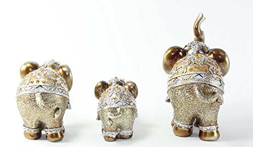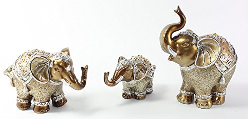 Set of 3 Gold Brass Feng Shui Elegant Indian Elephant Family Trunk Statues Wealth Lucky Figurine Home Decor Housewarming Gift US Seller