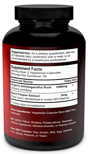- Superior Quality - Our non gmo Ashwagandha is pure and organically grown, direct from the whole root. We only use natural ingredients enclosed in vegetarian capsules. This means our supplement is GMO free, soy free, gluten free, and free from artificial ingredients and preservatives.