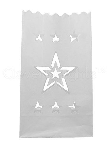 -. Title : CleverDelights White Luminary Bags - 50 Count - Star Design - Flame Resistant Paper - Wedding, Reception, Party and Event Decor - Luminaria Candle Bag
