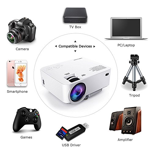 DBPOWER T20 1500 Lumens LCD Mini Projector, Multimedia Home Theater Video Projector Support 1080P HDMI USB SD Card VGA AV for Home Cinema TV Laptop Game iPhone Andriod Smartphone with Free HDMI Cable