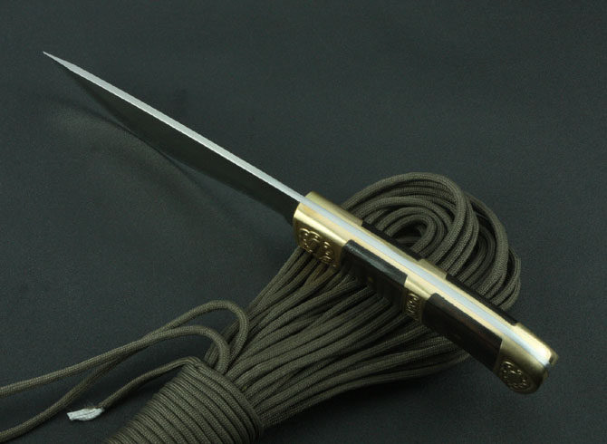 전체 길이: 18 미리메터 블레이드 길이: 9.7 미리메터 생크 길이: 118 미리메터 블레이드 폭: 35 미리메터 블레이드 두께: 3 미리메터 블레이드 재질: 5Cr13Wov 무게: 300 그램 (Daotao) 경도: 상당 56HRC 표면: 모래 빛 핸들 재질: 구리 핸들 + 흑단 다른: 가죽 (로프 포함되지 않습니다) ![]() ![]() ![]() ![]() ![]() ![]() 포장 상세
