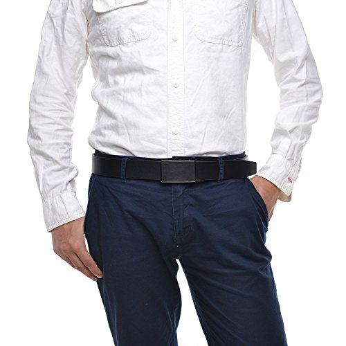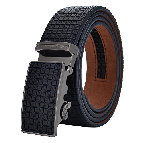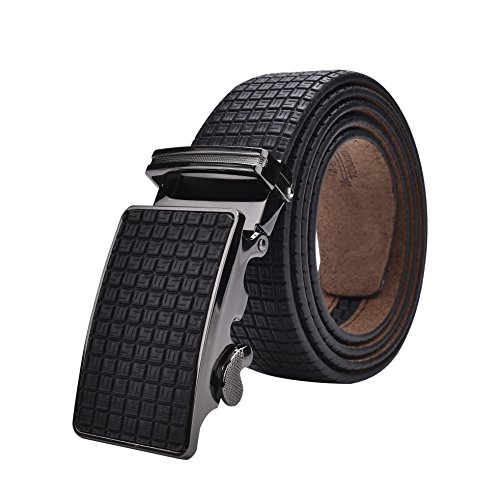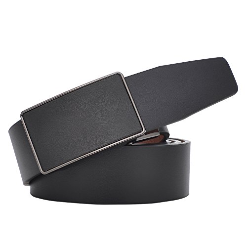 EASY USE - Just slide the men leather belt into the sliding buckle and pull the belt through, belts buckle simply auto locks the automatic belt, to release the belt, gently push the lever on the side of the removable buckle and lock will snap. Simple, smooth and sleek!