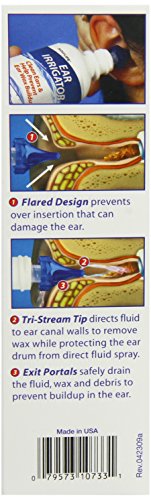- Feature : Tri-stream tip safely directs fluid to ear canal walls / Flared design prevents over-insertion / Exit portals provide clean, controlled fluid drain