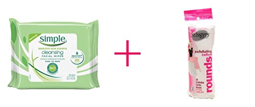 -. Title : 2 of Simple Cleansing Facial Wipes, Kind to Skin AND Swisspers Exfoliating Cotton Rounds - BUNDLE