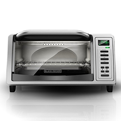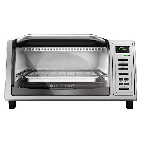 Clear-View Glass Door - Keep a close watch on your food while it bakes without opening the oven door.. The BLACK+DECKER Digital Toaster Oven is great for smaller baking tasks. Its expanded interior fits up to a 9 pizza or four slices of bread, and the digital controls let you choose to bake, broil, toast, or keep warm. Plus, our exclusive EvenToast Technology toasts bread up to 30% more evenly than the leading competition.