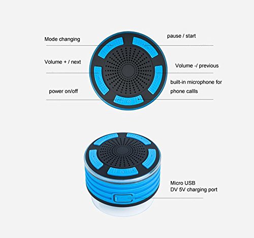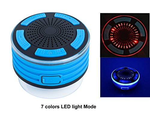 Yumun Portable Bluetooth Speakers LED Lights FM Radio Perfect Waterproof IPX7 ABS Bluetooth 4.0 Suction Cup for Shower Micro USB Charging