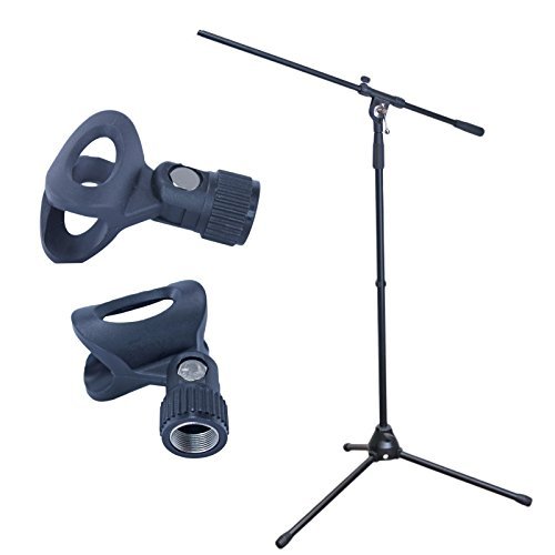 -. Brand : MCSproaudio -. Color : Black -. EAN : 0817375013081 -. Feature : Durable Metal Construction including metal pivot and metal base / Includes 2 Flexible Rubber Mic Clips (1 1/4" and 7/8") / 32" adjustable telescoping Boom with standard 5/8-27 threads / Longer legs with 25" leg spread width / Over sized 30" diameter footP.R.Int for better stability -. IsAutographed : 0 -. IsMemorabilia : 0 -. Label : Advance MCS Electronics -. Manufacturer : Advance MCS Electronics -. Model : 220-00029-00 -. MPN : m596 -. PackageQuantity : 1 -. PartNumber : m596 -. ProductGroup : Musical Instruments -. ProductTypeName : SOUND_AND_RECORDING_EQUIPMENT -. Publisher : Advance MCS Electronics -. Studio : Advance MCS Electronics -. Title : MCSproaudio Metal Tripod Adjustable Boom Arm Mic Stand with 2 Free Microphone Clips Professional Grade -. UPC : 817375013081