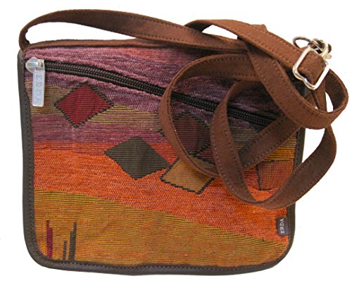 -. Brand : ERDA -. Color : Multi -. Department : womens -. Feature : This slim traveler's wallet has an adjustable suede strap that can be worn as a shoulder bag or cross body for more security. / Erda bags are made in Maine using sophisticated jacquard fabrics. / It has an outside zippered pocket for the items you need quickly, inside has two slip pockets and a zipper compartment. / The bag measures 8 by 6.5 and has a very slim silhouette. -. Model : 077F -. PackageQuantity : 1 -. ProductGroup : Apparel -. ProductTypeName : LUGGAGE -. Title : Traveler's Wallet in Jacquard Fabrics Artisan Crafted - Made in the USA