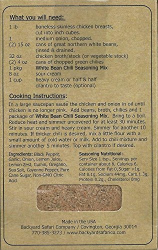 Backyard Safari Company Dinner Tonight Seasoning Mix, Eat, White Bean Chili