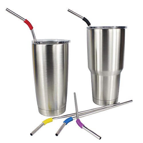 Product Description 5 pack of LONG Premium Stainless Steel Drinking straws that fit in the lid of the Yeti Rambler Tumblers Travel Mugs OTHER Stainless Straws will NOT fit in the Yeti cup top, they are too wide to fit in the small lid hole! These straws allow you to sip your drink without removing the lid. Please see the photos showing how they fit Elegant Brushed Stainless Steel Drinking Straw fits both 20 oz and 30 oz Rambler To Go Vacuum Mugs but is ESPECIALLY for the 30 oz cups 1/4" diameter. The #1 brand of Stainless Straws - Premium Quality again, PLEASE NOTE-- NO Travel Rambler Yeti Cups are included here, This is ONLY for the Stainless Steel Straws that fit the cup. These straws are not affiliate with the Yeti brand in any way. Also includes a LONG Straw Cleaning Brush. DISHWASHER SAFE! Re-Usable, Washable, Eco-Friendly. EHME stainless steel straws for ? YETI tumbler 30 oz 20 oz YETI tumbler 30 oz 20 oz SIC and THE BOSS tumblers Tervis mugs Ozark Trail tumblers 20 oz 30 oz Orca chaser tumblers Mossy oak tumblers Artic and Engel mugs Smart coolers etc 0