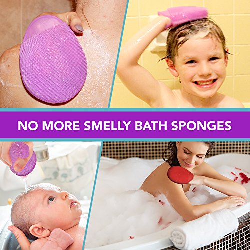 - BODY AND BABY BATH SPONGES without the worry of what is growing on your sponge. Safe for the delicate skin of newborns and infants. Younger kids love washing with them, making the scrubbing mitt a child favorite. Exfoliate dead skin yet soft enough to use on your face. All around great bath sponge for all ages; men, women or children. Just hang to dry.