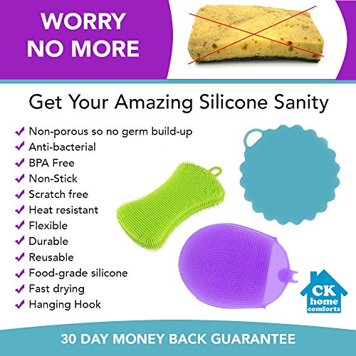 - TIRED OF SPONGES AND SCRUBBERS THAT SMELL AND ARE FILLED WITH MILDEW? Feeling uneasy about what you are cleaning with? Bathing your children with? Cooking with? Your fears are over with these amazing silicone sponges. They are non-porous, mildew-free, germ-free, heat resistant and can be hand washed, boiled or put in the dishwasher to keep clean. Reusable and durable, lasting more than 10 times the average sponge.