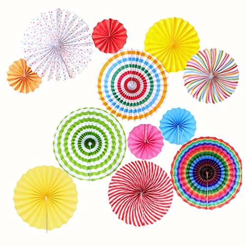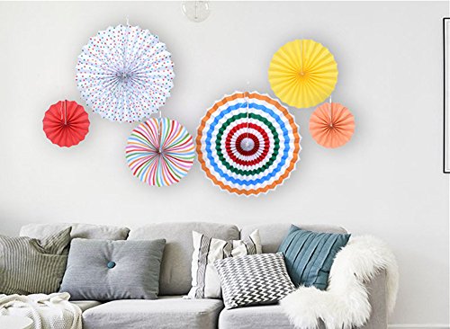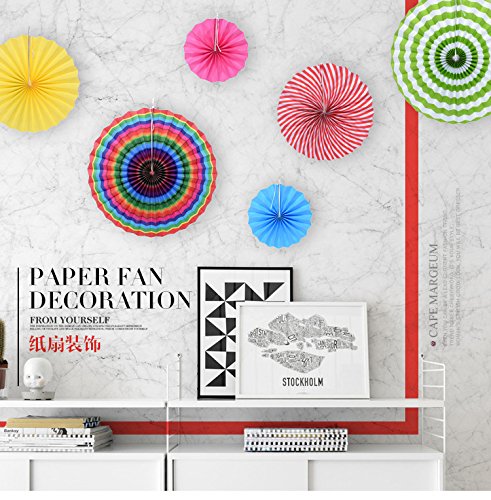-. Feature : ✔️ VARIATY IN SIZES AND COLORS: Comes in 2 Sets with 6 in a set, multiple colored paper fans have assorted sizes ranging from 8",12",16" / ✔️ GORGEOUS LOOKING: You will not get wrong on these vibrant paper fans, they're perfect addtion to any themed parties, birthday, wedding, events, festivals, fiesta, Christmas, New Year's Eve, photo booth, or simply for your home decoration / ✔️ DESIGNED TO HANG: These colorful round paper fans are made of heavy thick and sturdy pleated paper with strings for easy hanging, on a wall, window, tree, ceiling, suits for indoor and outdoor events / ✔️ EASY TO INSTALL: Better to assemble them with paperclips instead of glue if you want to reuse them in your future party or events, make sure they are tightly assembled or they will fall apart / ✔️ GUARANTEED: Return and get refund in 30 days if they do not meet your expectations