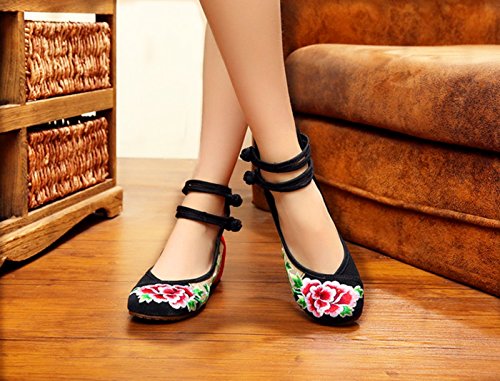 Binding : Apparel Product Description Chinese traditional embroidered shoes with rubber sole is suitable for any season and dressy at any age. Round toe shoes makes your foot look smaller. This shoes have cotton-blend upper with flower pattern decoration, and they are comfortable and practical. Please compare the chart size in the description with your feet length carefully before ordering! 0