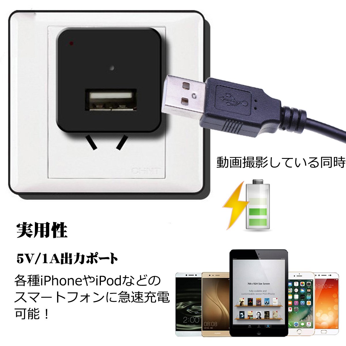 Hidden camera camcorder is shooting videos, as well as USB 5 V charging and charging terminals, you can charge smartphones such as iPhone and iPod.