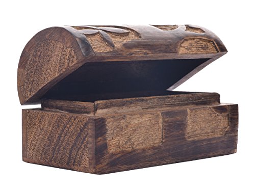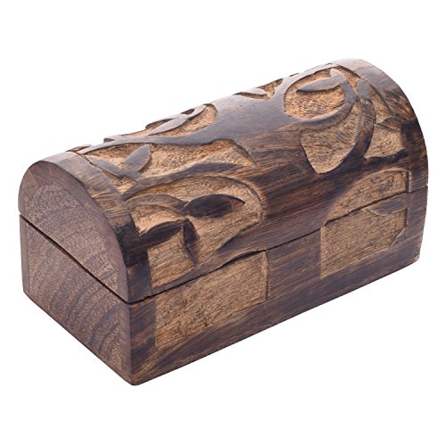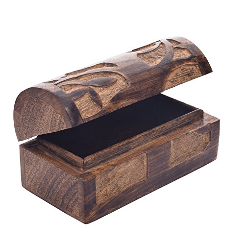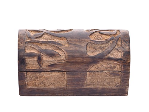 Thanksgiving Jewelry Trinket Keepsake Storage Box Chest Rustic Wooden Organizer with Hand Carved "Tree of Life" Design