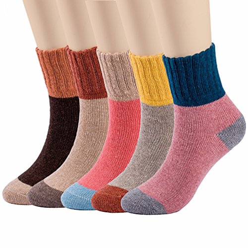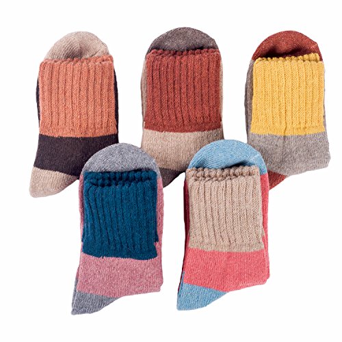 -. Feature : Pack of 5 Womens Vintage Style Cozy Thick Cotton Knit Casual Warm Wool Winter Fall Crew Socks. Soft, comfy, breathable, wearable, moisture-wicking and odor-fighting. No itchy or scratchy feeling. / Comfortable Fabric: Made from blend of Wool 35%, Cotton 24%, Polyester 36% and Spandex 5%. Experience ultra-plush softness, flexibility and lightweight with the high quality jacquard weave. / One Size Fits Most: Eternities wool warm socks have free sizes 23 to 25cm, come in a standard US size that fit women's shoe sizes 5 to 9. so everyone can enjoy warm, snug, toasty feet in autumn and winter. / Package include: 5 pairs of winter cozy socks (mixed colors), with elegant, fun, trendy and unique vintage style patterns designs, versatile enough for any daily occasion. A great gift in Christmas and New Year. / So Easy to Care: Turn all the cozy socks inside-out before washing. Hand wash or machine wash on gentle cycle in cool water. Do not bleach. Tumble dry low. No need to iron. Do not dry clean. 100% Guarantee - If something is wrong with your winter wool socks, contact us any time, we will try our best to make things right within 24 hours!
