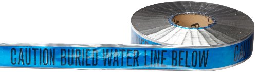 Brady 91603 1000' Length, 2" Width, B-721 Metal Detectable Polyester, Black On Blue Color Detectable Identoline Warning Tape - Water, Legend "Caution: Buried Water Line Below"