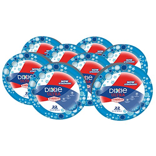 Dixie Ultra Heavy Duty Paper Plates, 10 1/16 Inch Plates, 176 Count (8 Packs of 22 Plates)