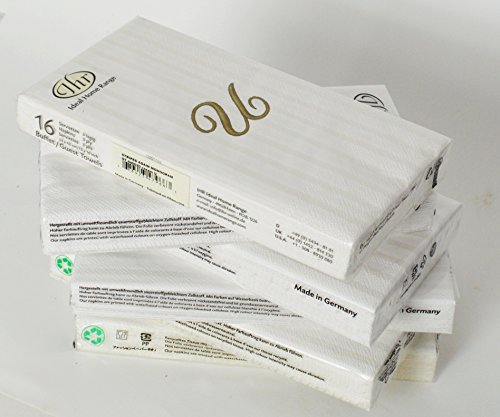 - 6 Packages of tone on tone ivory striped napkins with gold monogram U, total 96 napkins