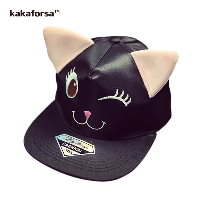 | [해외]Kakaforsa 여성 사랑스러운 만화 고양이 귀 PU 가죽 야구 모자 남성 조정 솔리드 여름 트럭 모자 귀여운 힙합 태양 캡 |