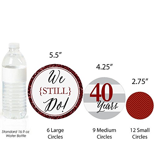 -. Feature : 40th Wedding Anniversary Giant Circle Confetti INCLUDES 27 large ruby party confetti. We Still Do party decorations are perfect for a 40th anniversary party. / 40th Wedding Anniversary giant circle confetti SIZE 5.5 inches large circles, six qty; 4.25 inches medium circles, nine qty; and 2.75 inches small circles, twelve qty. The unique design and large size makes these fortieth wedding milestone party decorations an impressive addition to any wedding anniversary. / EASY TABLE DECOR: 40th Wedding Anniversary giant circle confetti comes in a variety of coordinating patterns in three different sizes. Scatter them down the length of your party tables, add them to centerpieces or hole-punch them and string together as an anniversary banner. We Still Do paper confetti pieces will make a statement however you choose to use them. / PREMIUM PARTY SUPPLIES: 40th Wedding Anniversary giant circle confetti is professionally P.R.Inted on heavy-duty cardstock paper with a photo-like shine. They individually inspected and carefully packaged by hand. Giant table confetti will arrive flat. Get creative with your DIY party ideas! / MADE IN THE USA: We Still Do - 40th Wedding Anniversary Giant Circle Confetti is designed and manufactured at our Wisconsin facility using materials that are Made in America. 40th Wedding Anniversary Table Confetti use a No-Mess Glitter P.R.Int: Our confetti is designed with a P.R.Inted image of glitter, eliminating glitter flake while maximizing bling effect!