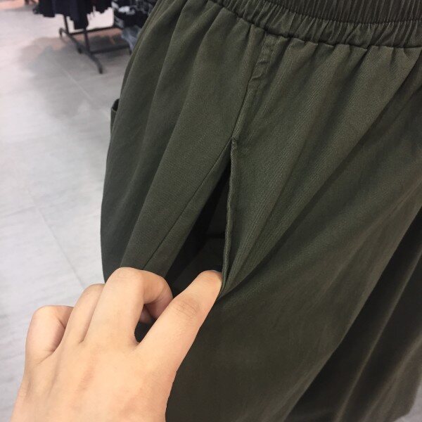 워싱 7부 면 팬츠로 편안하면서도 와이드 핏으로 세련미를 강조한 제품입니다.
