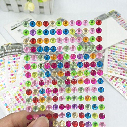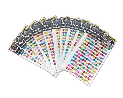 yueton 10 Sheets Colorful Self Adhesive Bling 6mm Round Rhinestone Craft Jewels Gem Sticker Embellishments