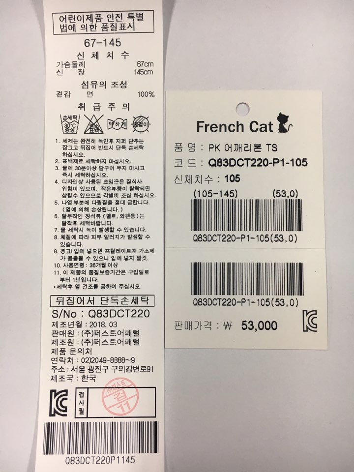 제조자 : 퍼스트어패럴