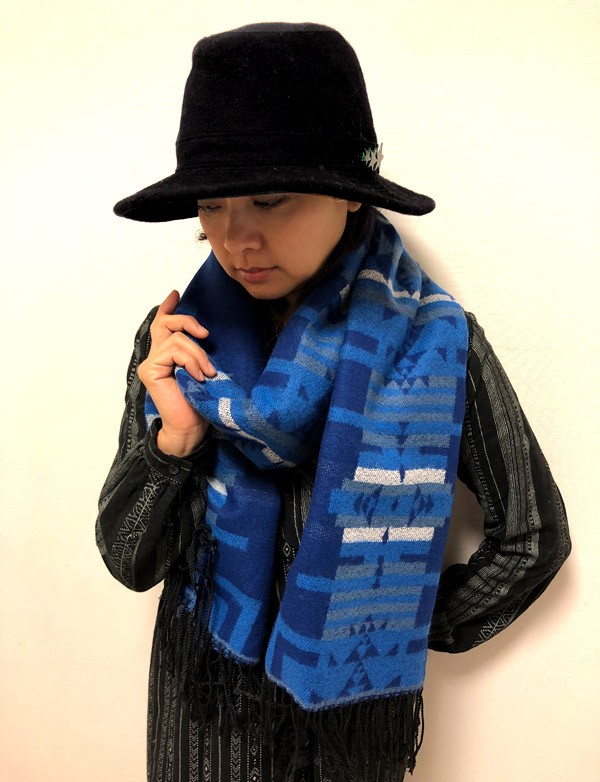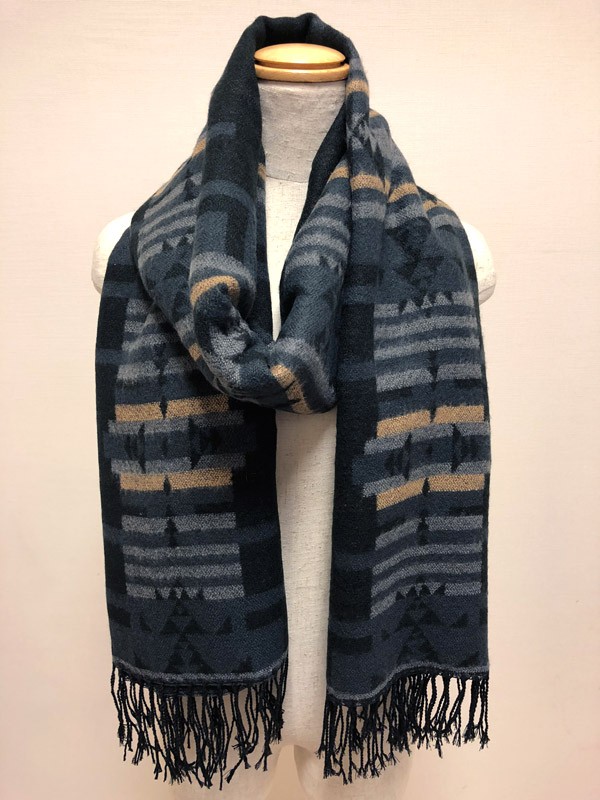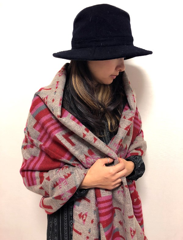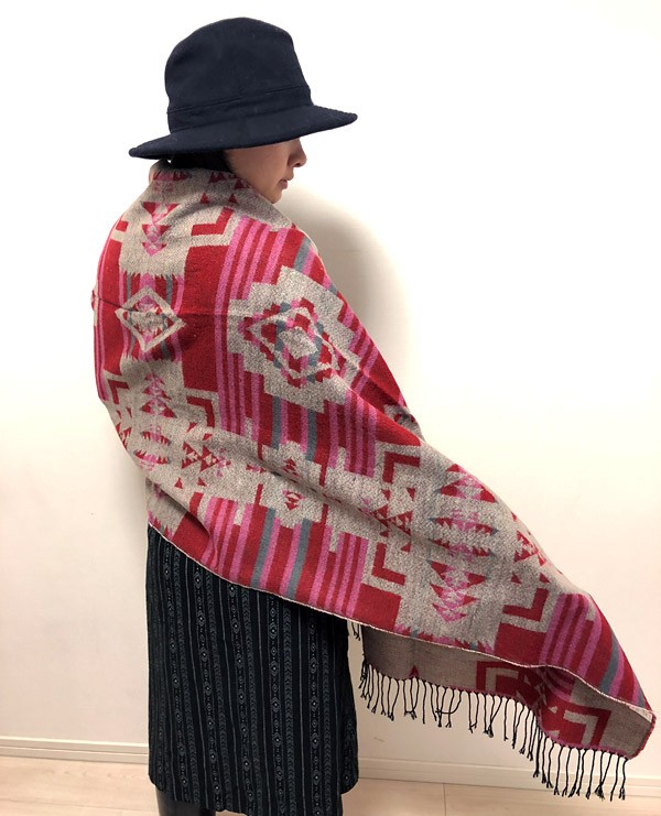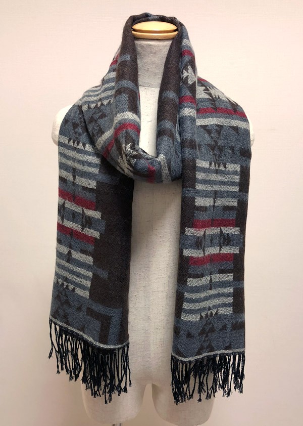 スパイシーで温もりのあるネイティブ柄を主役にすれば、単調になりがちな冬のコーデがグッと個性的に☆ 首から垂らして柄見せするもよし、ぐるぐる巻きにするもよし。