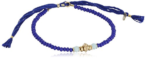 -. Feature : Slide bracelet with faceted-red beads featuring gold-tone centerpiece flanked by light-blue beads