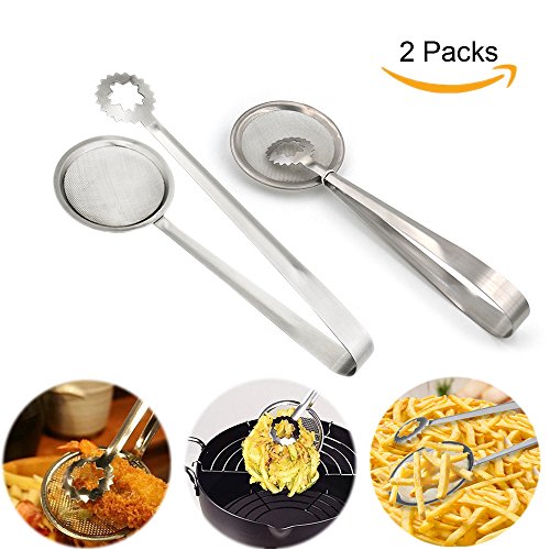 (TOOL GADGET®)/Kitchen Dining/Cook's Tools Gadgets/DIRECT FROM USA/Tool Gadget 2 pcs Solid Stainless Strainer Skimmer Tongs, Stainless Steel Tongs Strainer. Fry T...