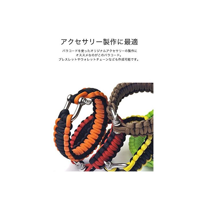 파라 코드를 사용한 악세사리 제작,나이프의 무늬로 감음 붙이거나 사용됩니다.서바이벌 나이프나 콜롬비아 나이프에 감음 붙여 보면 멋쟁이 입니다.팔찌나 워렛 체인 등도 작성 가능합니다.